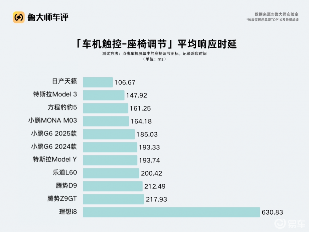 座椅调节同样以 100ms级别的响应速度拿下第一;