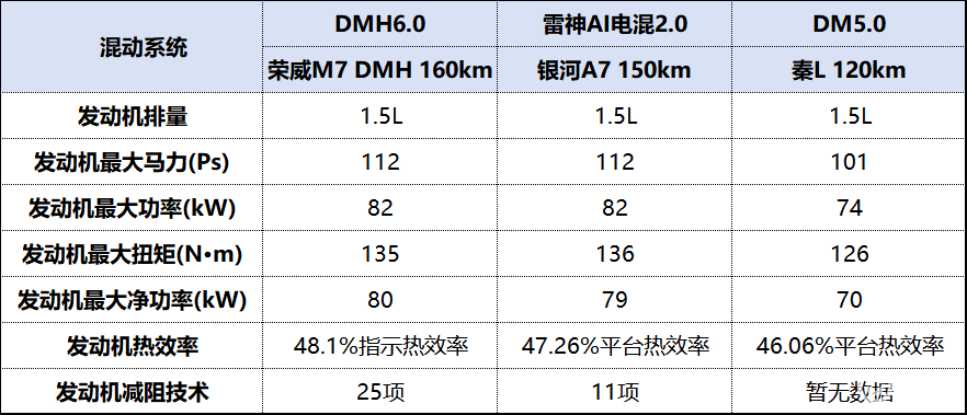 2025年中国混动市场渗透率突破40%,上汽DMH、吉利雷神AI电混2.0、比亚迪DM5.0以超高技术实力和2L级超低能耗形成“三足鼎立”,但技术路线差异已决定用户价值鸿沟:荣威以“全栈自研集成化”破局,代表车型为荣威M7 DMH的160km版本,吉利走“性能优先模块化”路线,代表车型为银河A7 EM-i 的150km版本,比亚迪则拥有“先发优势平台化”优势,代表车型为比亚迪秦L的120km版本。不过,对于用户来说,这三种不同技术路径,谁更务实、实用呢?我们从技术层面对比一探究竟。