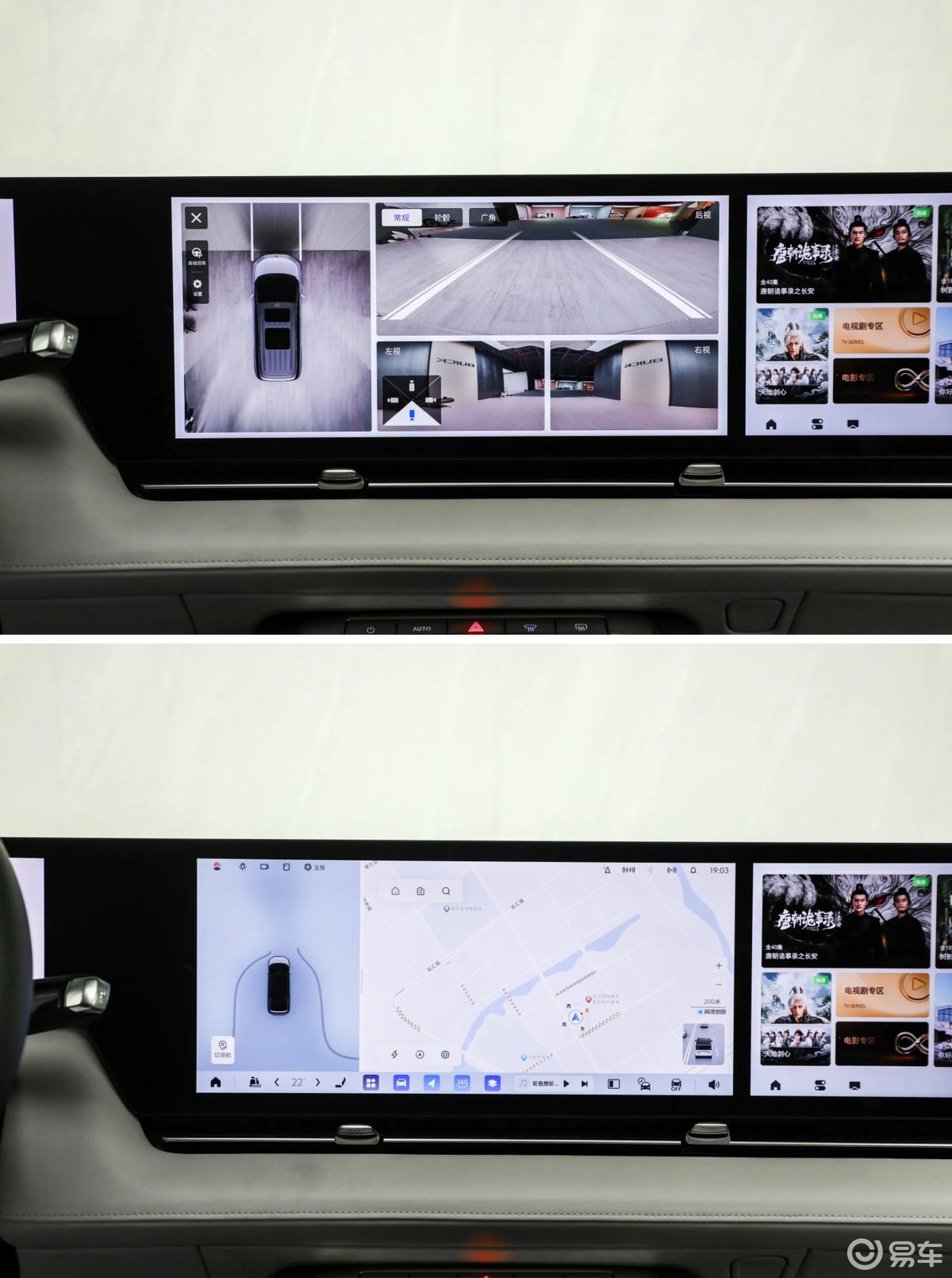 尽管纯电版的完整配置尚未公布,但我们可以从已上市的插混版身上窥见其旗舰级的内饰与智能水准。座舱内最吸引眼球的莫过于多屏联动系统:包括16.3英寸的中控屏与副驾娱乐屏、21英寸的4K后舱智慧屏以及一块50英寸的AR-HUD抬头显示,共同构建了一个沉浸式的数字空间。高通最新一代SA8775P芯片为这套系统的流畅运转提供了算力保障。