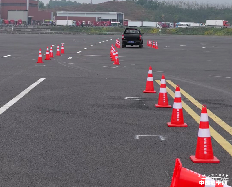 对于搭载手动变速器的车辆,应以最高挡位进入试验车道;对于搭载自动变速器的车辆,应以D挡进入试验车道;车头进入第1段后在2m处松开油门,直至驶出试验车道。试验中未碰到放置的任一交通锥视为顺利通过,应测量在试验车道第1段末端处的车速。以能通过试验车道的第1段末端处的最大车速作为最终成绩。