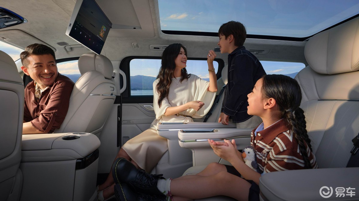 空间布局上,其二三排纵向空间均超过1000mm,确保了每一排乘客都能拥有舒适的腿部空间,真正实现“三排平权”。后备厢容积超过1000L,可轻松容纳15个20寸登机箱,同时还提供163L下沉储物空间,进一步提升了储物灵活性。全车共设置42处收纳储物空间,小物件收纳随手可得,搭配6/7/8座多种布局选择,完美适配家庭出行、商务接待等多元场景。
