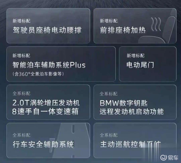 配置变化方面,,2026款宝马3系新增标配驾驶员座椅电动腰撑、前排座椅加热、智能泊车辅助系统Plus(含360度全景泊车影像等)、电动尾门配置。此外,330Li M运动曜夜套装及以上车型新增全彩平视显示系统;330Li尊享型M运动曜夜套装标配碳纤维内饰,新增水晶质感内饰组件。
