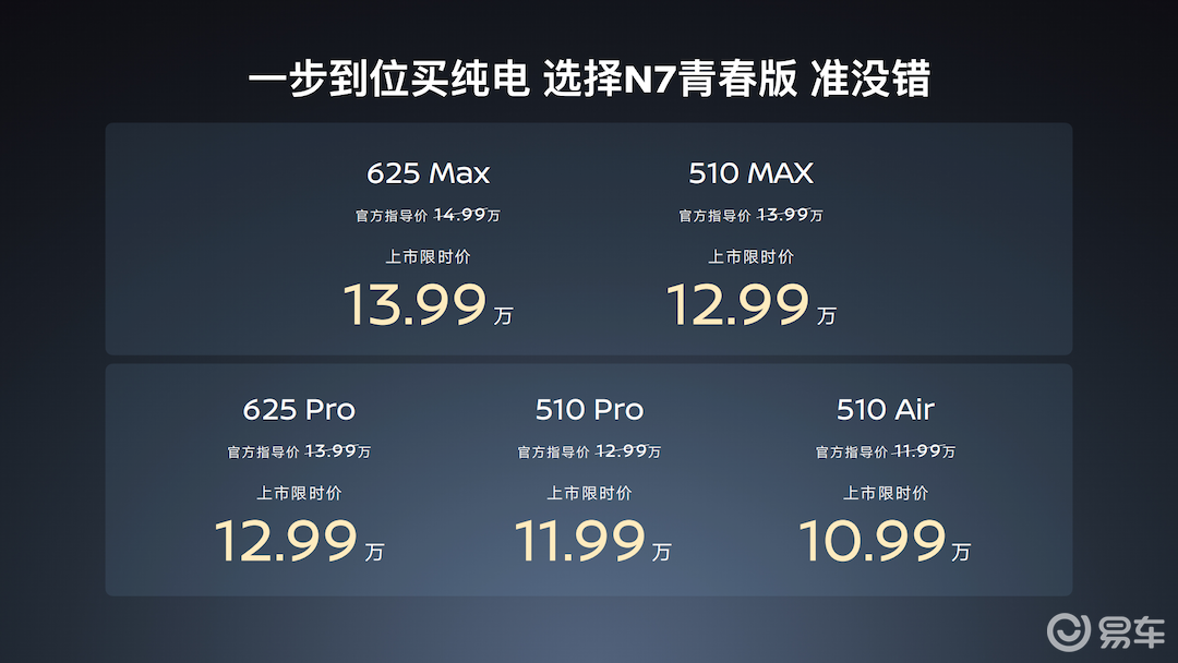 N7青春版作为东风日产天演架构下首款新能源战略车型,N7在2025年赢得5万多个家庭青睐。在专业咨询机构杰兰路发布的用户口碑调研中,N7的用户净推荐值在中大型纯电轿车中排名第一,成为口碑冠军。为了让更多家庭,轻松拥有这款越级品质的纯电轿车,N7青春版焕新而来。