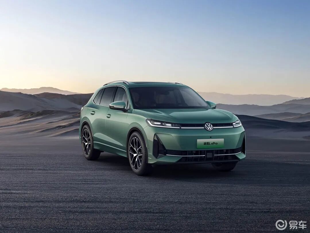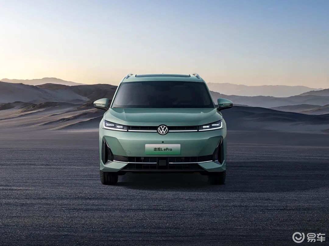 外观方面,途观l ePro整体延续途观L Pro的造型,同时融入大量新能源风格设计元素,实现燃油车型向混动车型的风格转型。相比于燃油车,途观L ePro的前包围格栅尺寸缩小,大面积采用车身同色材质,弱化了燃油车型的进气需求,两侧导风槽则进行运动化处理,提升前脸的层次感。此外,全新LED前大灯搭配贯穿式灯带与发光品牌Logo,构成了极具辨识度的前脸视觉中心。