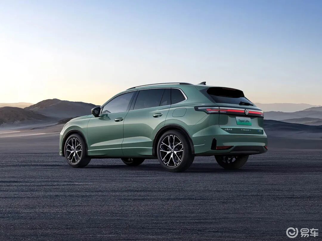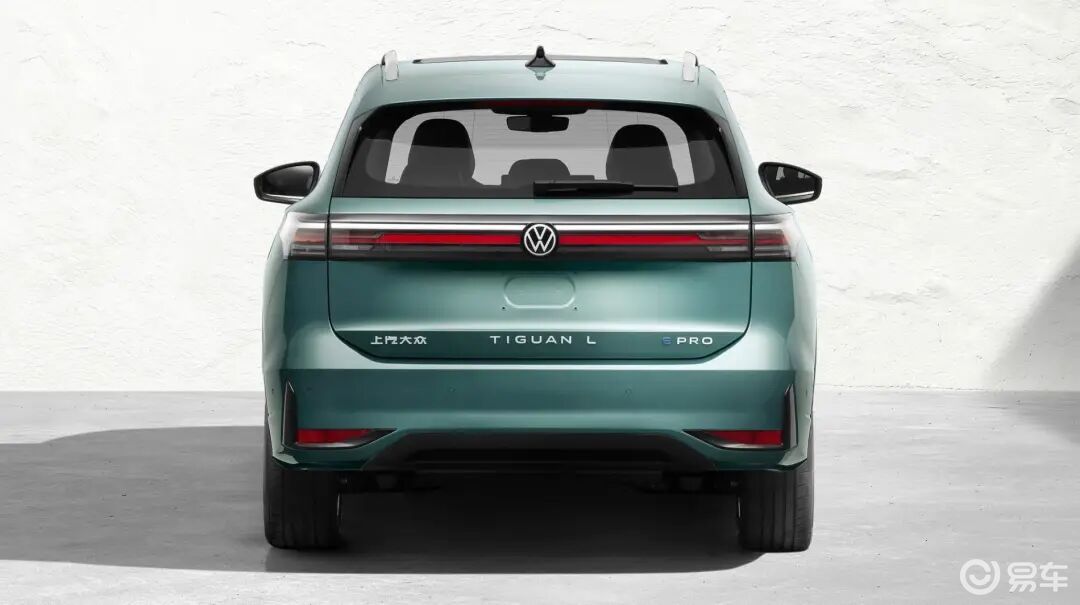 车身侧面,途观L ePro整体造型与燃油车大同小异,双段式腰线、黑色轮眉、传统机械车门把手等设计元素得以保留。尺寸方面,新车长宽高分别为4744/1842/1684mm,轴距2791mm,采用5座布局。车尾部分,新车依旧采用贯穿式尾灯设计,但是内部设计有所简化,中央发光车标与前脸形成呼应,车顶扰流板内置高位刹车灯组,后保险杠造型简化并采用隐藏式排气设计,车型标识全部位于尾门下方,左侧是上汽大众表明厂商身份,中间是TIGUAN L表明车型,右侧是ePRO表明插混车型身份。