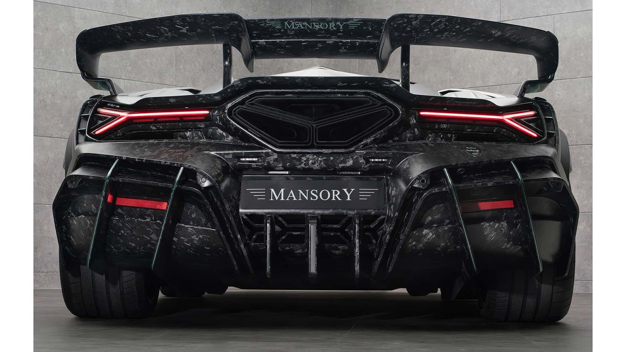 车尾部分,Mansory安装了一个大尺寸的扩散器和一个可伸缩的尾翼,增强了车辆的下压力。此外,独特的三角形尾排系统和中置排气管为Carbonado X增添了更多视觉冲击力。