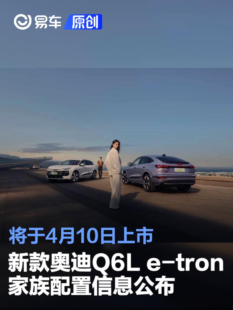 易车讯 4月7日,奥迪公布了新款奥迪Q6L e-tron家族部分配置信息,新车围绕电池、性能与智能三大核心维度实现全面升级。官方表示,新款奥迪Q6L e-tron家族将与奥迪a6l e-tron同时在4月10日举办的一汽奥迪智电科技日暨智电旗舰新品发布会上正式上市。